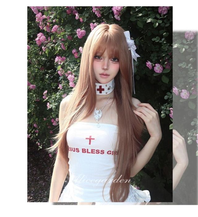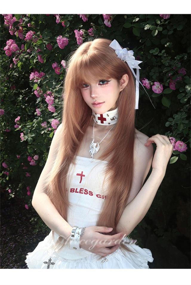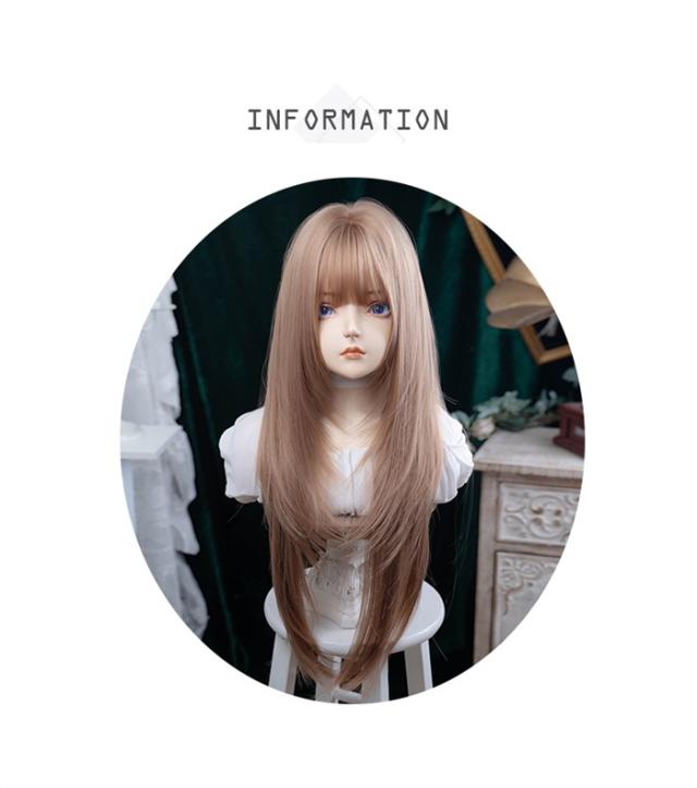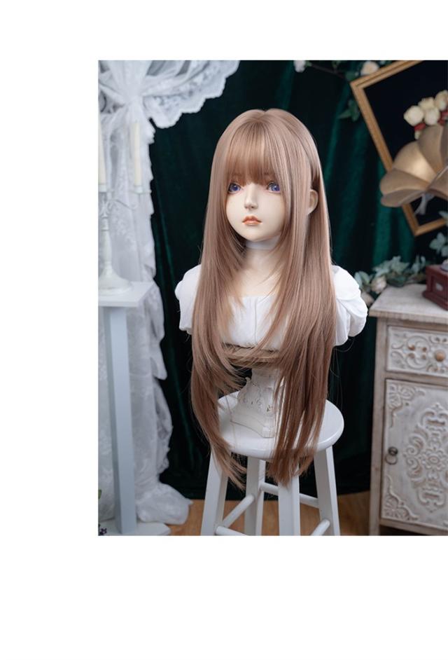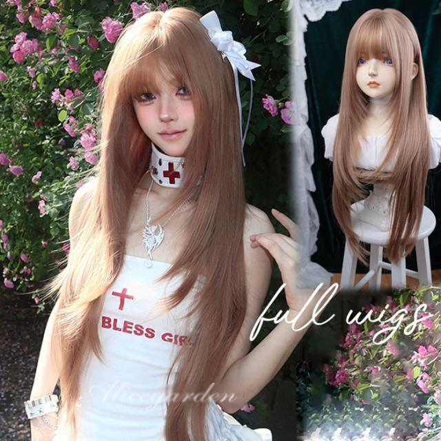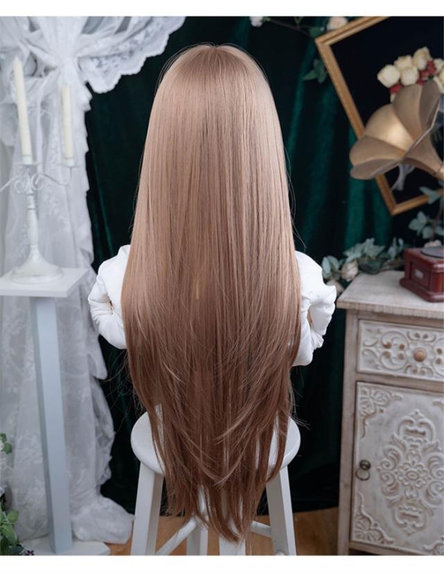 ウィッグ レディース ローズゴールド フルウィッグ ロング ストレート ぱっつん前髪 前髪あり 可愛い かわいい 大人用 コスプレ ロリータ ゴスロリ コスチューム 原宿風 仮装 超自然 かつら wig Lolita 小顔 文化祭 イベント 学園祭 ハロウィン