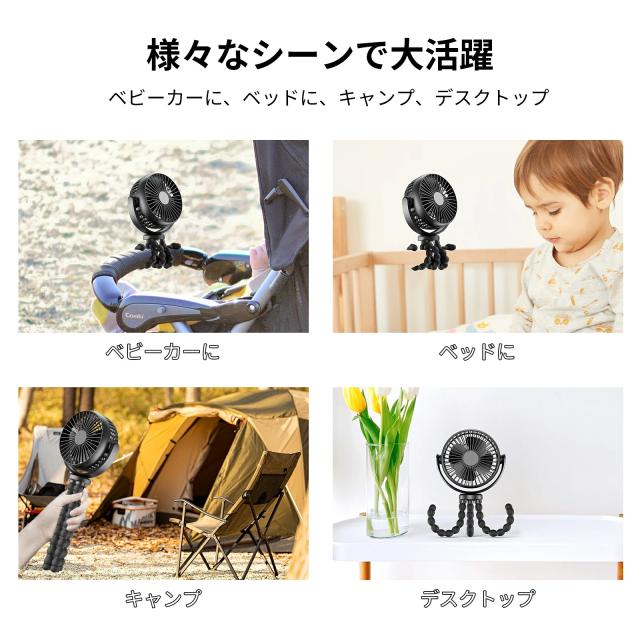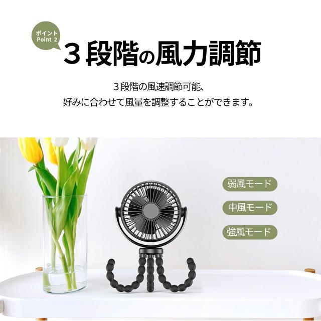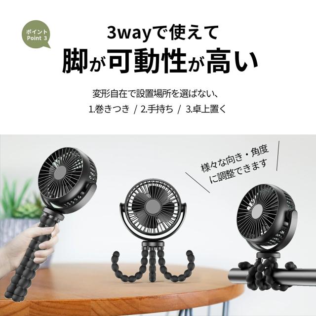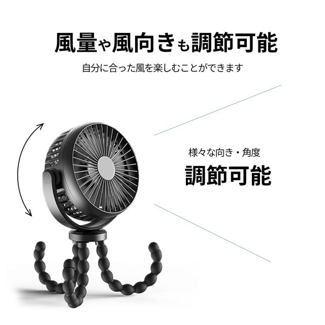 ベビーカー 扇風機 卓上扇風機 ハンディファン 携帯扇風機 5000mAh ミニ扇風機 USB扇風機 携帯扇風機 車 卓上・吊り下げ・手持ち・巻き付け 風量3段階調節 720°角度調節 長時間連続使用 軽量 室内