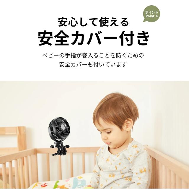 ヘッドは上下左右、720度自由に設定可能で、好きな方向に風を送ることができます。真夏のエアコンを効かせた車内でも、風の届きにくい後部座席に乗っていると軽い熱中症にかかることがあります。ミニ扇風機を使うことで車内の空気を循環させ、後部座席も涼しく快適に過ごすことができます。