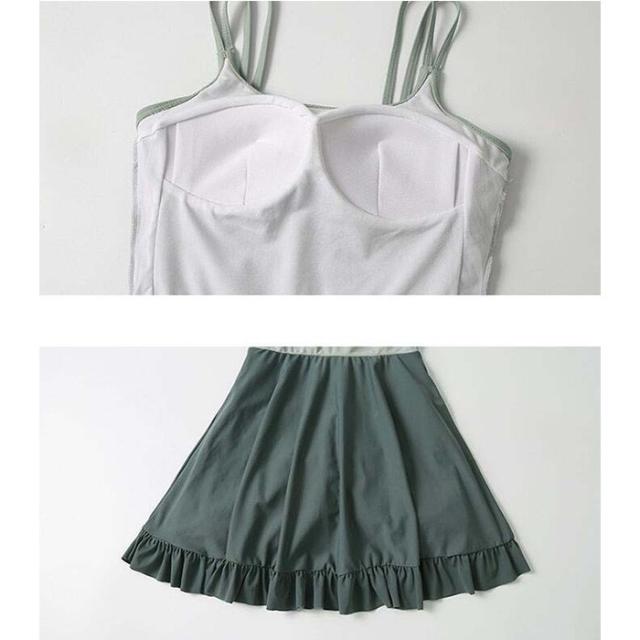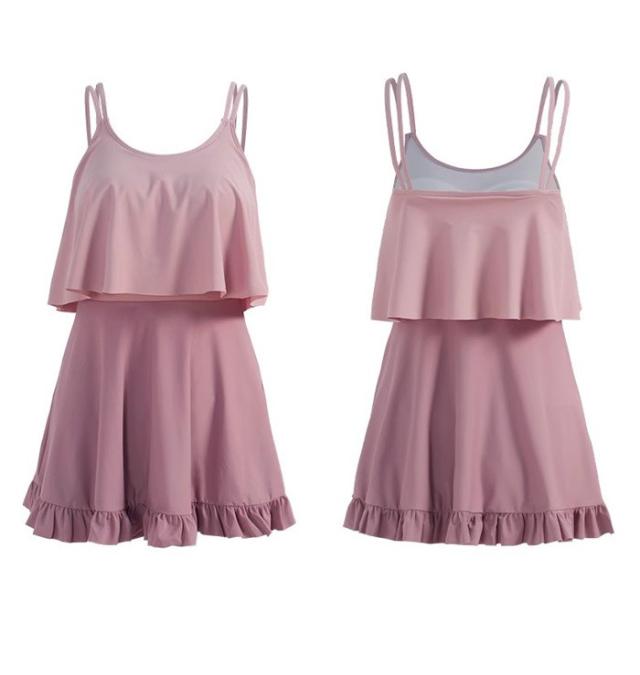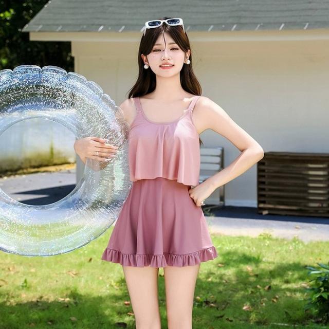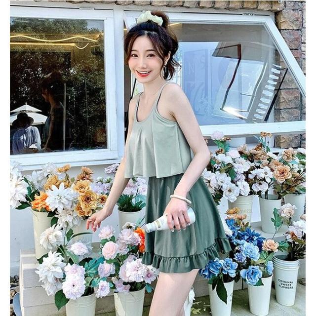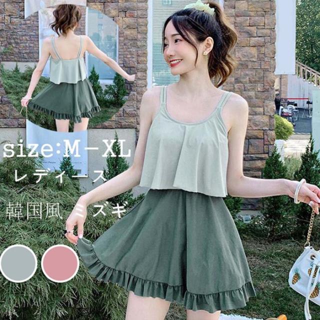 水着 ワンピース 体型カバー 韓国 水着 レディース オールインワン みずぎ 大人女子 フリル かわいい お腹 お尻 ウエスト 太もも カバーアップ M L XL ピンク グリーン