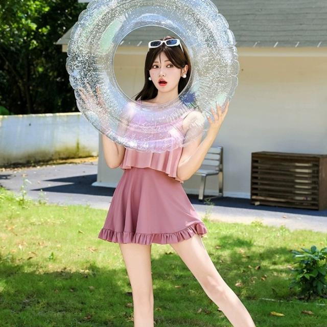 水着 ワンピース 体型カバー 韓国 水着 レディース オールインワン みずぎ 大人女子 フリル かわいい お腹 お尻 ウエスト 太もも カバーアップ mg008x0x0ld