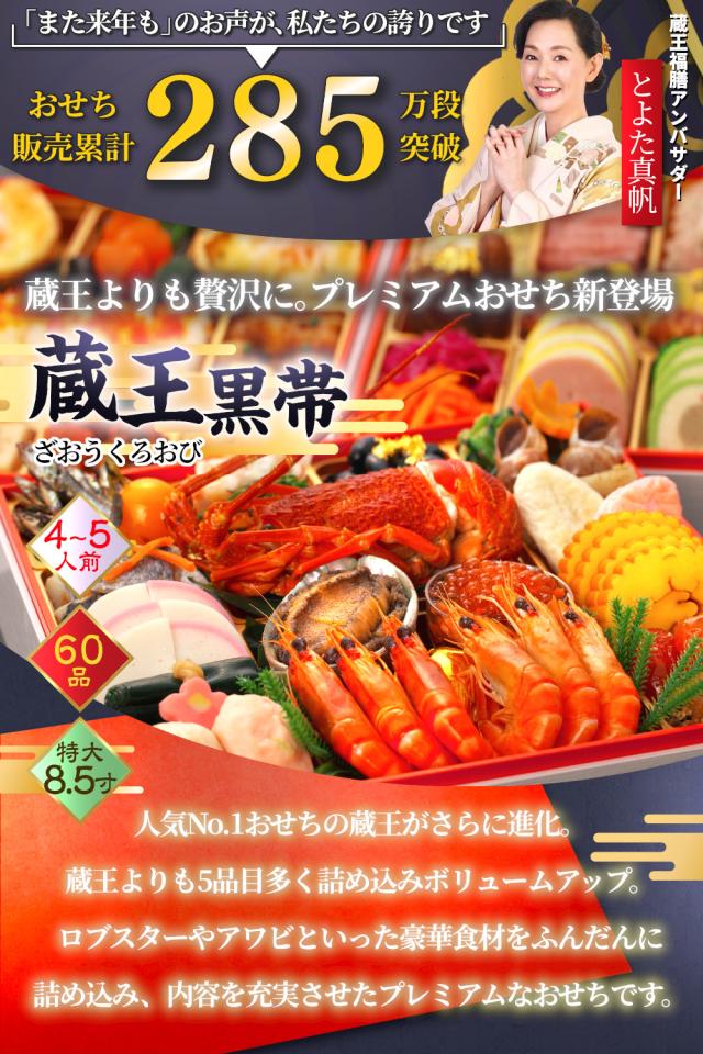 \ポイント20%還元/ おせち 2026 おせち料理 早割 【蔵王黒帯】特大 8.5寸 4人前 5人前 全60品 予約 2026年 4~5人前 お節料理 お節 御節 osechi oseti 大きい 美味しい おいしい 冷凍 冷凍おせち 洋風おせち 和洋おせち 有名 人気 中国 不使用 蔵王福膳