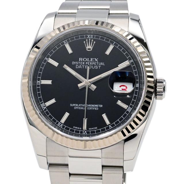 [3年保証] ロレックス メンズ デイトジャスト 116234 ランダム番 K18WG/SS 箱保 カレンダー ブラック 黒 自動巻き 腕時計 中古 送料無料