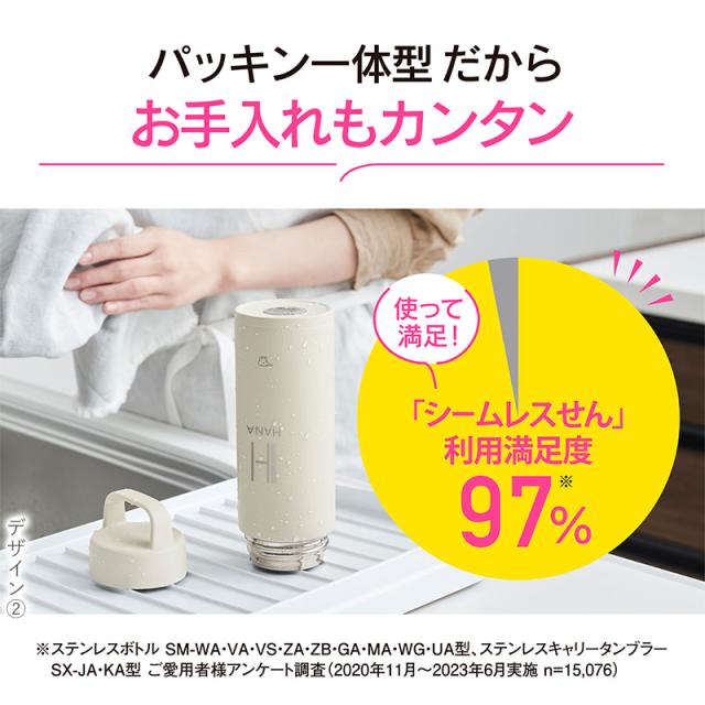 ・熱い飲み物を入れる際は、火傷の恐れがあるため、飲む前に温度を確認してください。 ・炭酸飲料を入れると、内圧が上昇し、内容物が噴き出す可能性があります。 ・本製品は電子レンジには対応していません。 ・冷凍庫で保管すると、内容物が凍結し、製品が破損する恐れがあります。 ・中性洗剤を使用し、柔らかいスポンジで洗ってください。 ・塩素系漂白剤の使用は避けてください。 ・洗浄後は十分に乾燥させてから組み立ててください。 ・より詳しい情報やその他の注意事項については、象印公式サイトの取扱説明書をご参照ください。 ・モニター・ディスプレイによっても写り方が変わります。 予めご了承くださいませ。 |