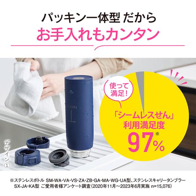 | 仕様 | 「せん」と「パッキン」が一体化しており、分解せずに洗浄できます。 保温・保冷に両対応しています。 |