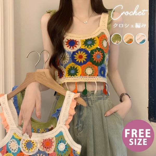 クロシェ編み キャミソール ビスチェ ニット サマーニット タンクトップ 手作り ブラキャミ トップス エスニック 背中開き 春 夏 秋 冬 リブ編み 花柄 おしゃれ 肩出しニット 日常可 カジュアル 旅行 レディース 韓国風 可愛い 女性 春 夏 秋 eh104x1x1l9
