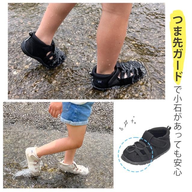 キッズ サンダル 女の子 男の子 つま先あり 水陸両用 水遊び おしゃれ かわいい お出掛け 軽量 子ども靴 ウォーターシューズ 黒 ブラック ホワイト Parade 56302