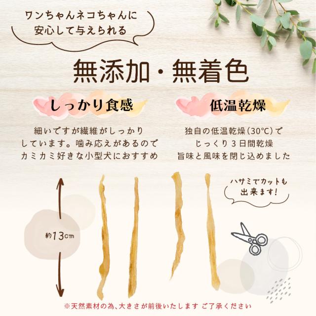 スティック状のアキレスをショートサイズにカットしました! ジャーキー初心者のワンちゃんや超小型・小型のワンちゃんにも与えていただけます 簡単にハサミでカットもできるのでご褒美おやつとしてもオススメです! 自然素材のため色形状にバラツキがあります。 開封後は冷暗所に保管しお早めに与えてください。 与えすぎない様に注意してください。丸飲みの恐れがあります。 与えている時は飼い主さまの見ている所で与えてください。 |