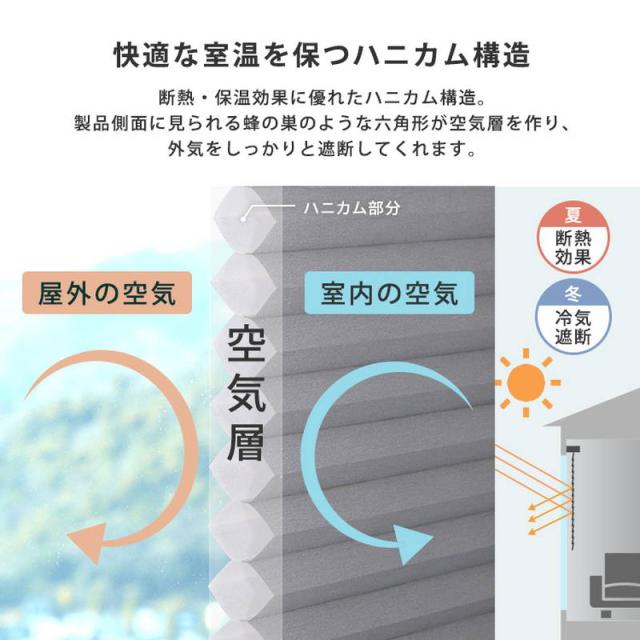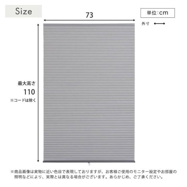 ブラインド 突っ張り棒取付 73x110cm 採光タイプ 遮熱 断熱 幅詰め可能 フリーカット ハニカムブラインド