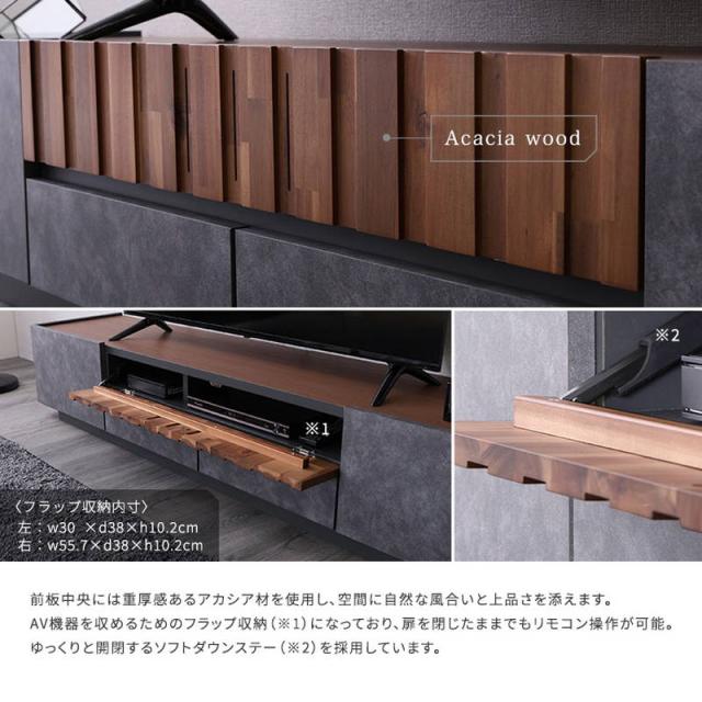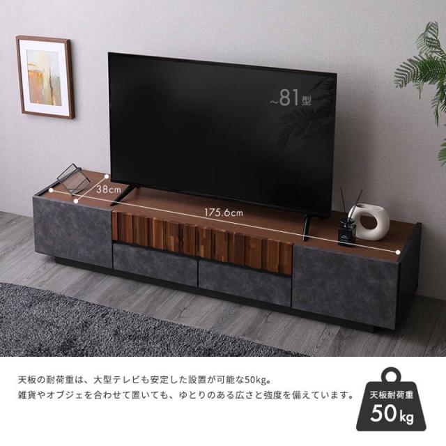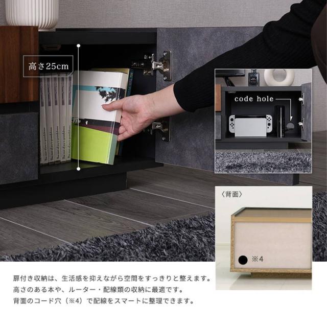 テレビ台 TVボード 幅180cm モルタル調×木目 モダンテイスト 日本製 完成品 引き出し収納 扉収納付き