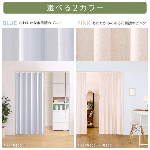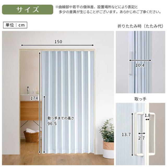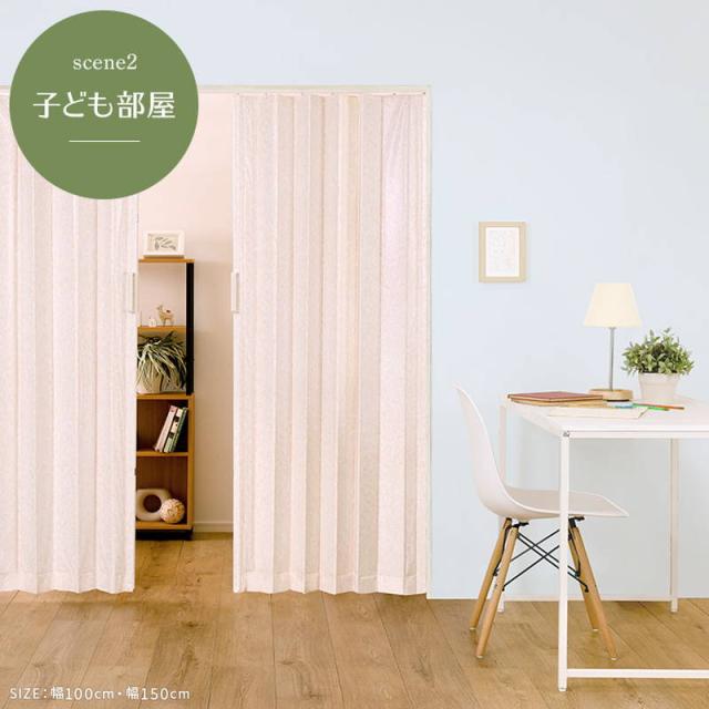 アコーディオンドア カーテン 幅150cm 簡単取付 丈詰め可能 シンプル模様 間仕切り 目隠し