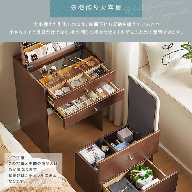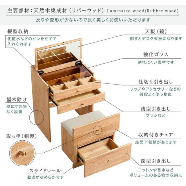 ドレッサーデスク 椅子セット チェア付き 天然木 木製 コンパクトマルチ収納ドレッサー