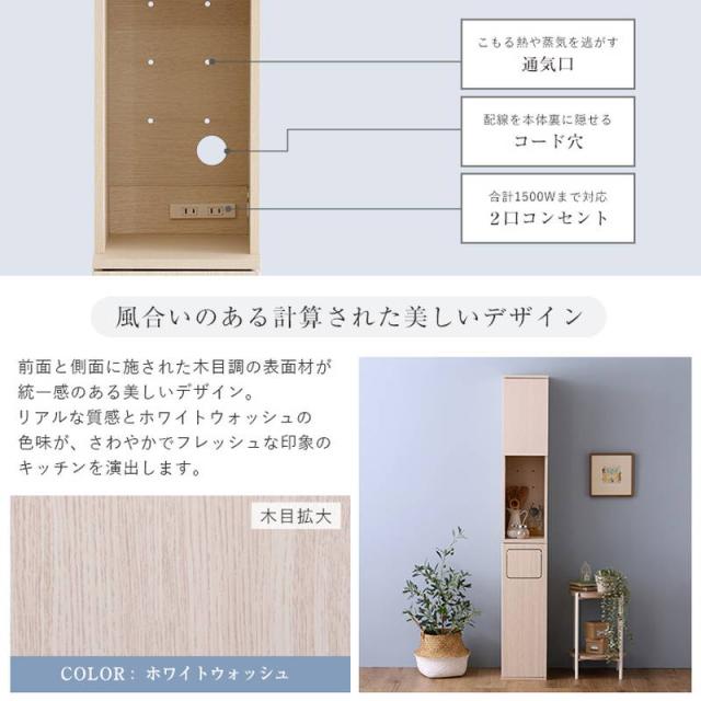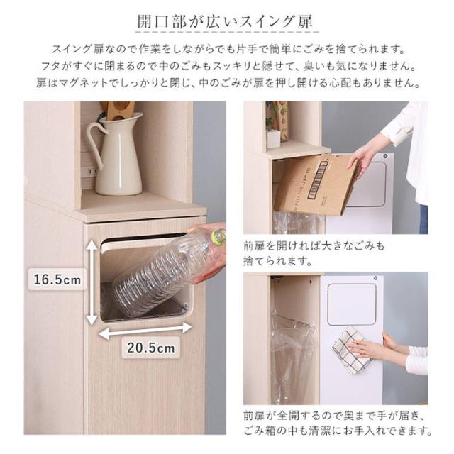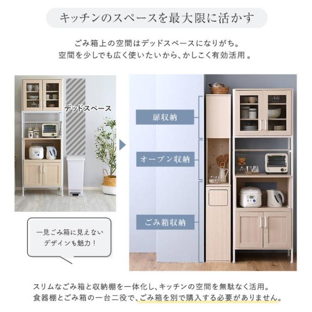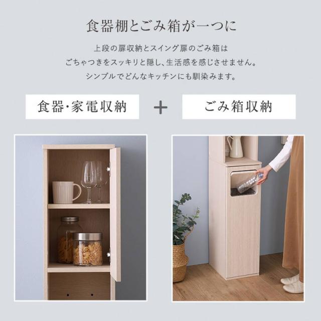 食器棚 ゴミ箱一体型 キッチンラック 幅26.6cm スリム 隙間収納 北欧調 45Lゴミ箱 ごみ箱1つタイプ