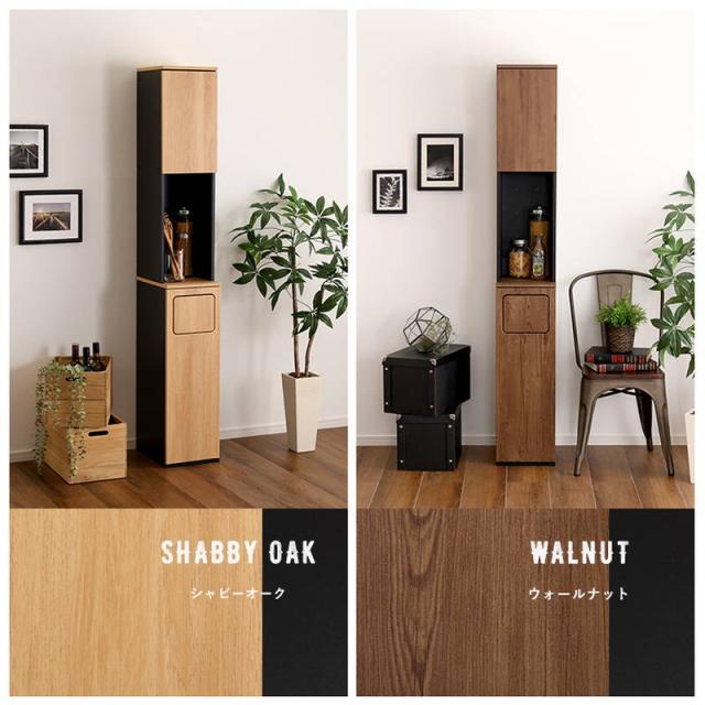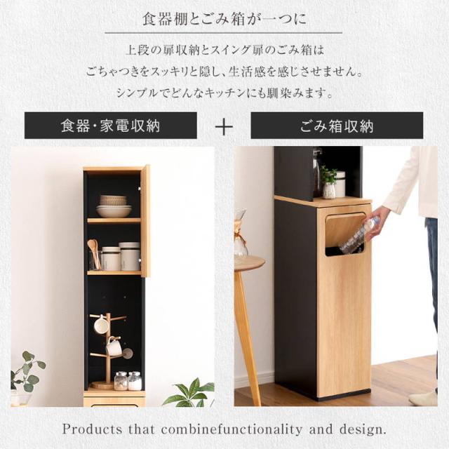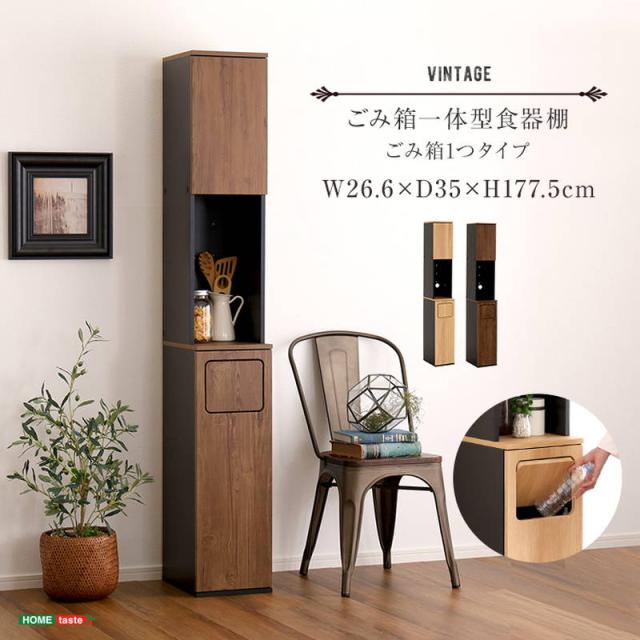 食器棚 ゴミ箱一体型 キッチンラック 幅26.6cm スリム 隙間収納 ヴィンテージ調 45Lゴミ箱 ごみ箱1つタイプ