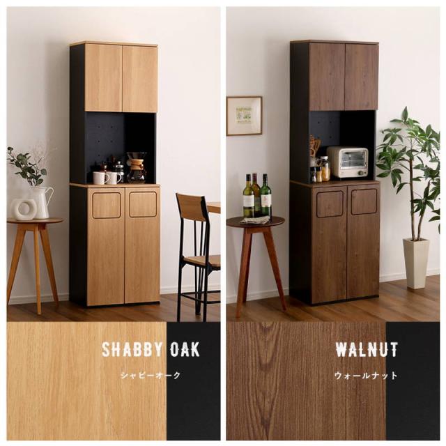 食器棚 ゴミ箱一体型 キッチンラック 幅53.4cm ヴィンテージ調 45Lゴミ箱 2分別 レンジ台 カップボード