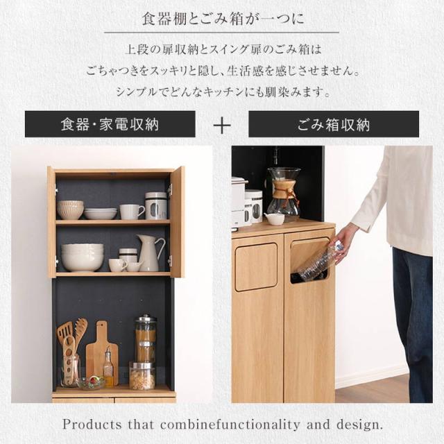 ●ヴィンテージテイストのごみ箱が一体型になった食器棚!ごみ箱2つタイプ
