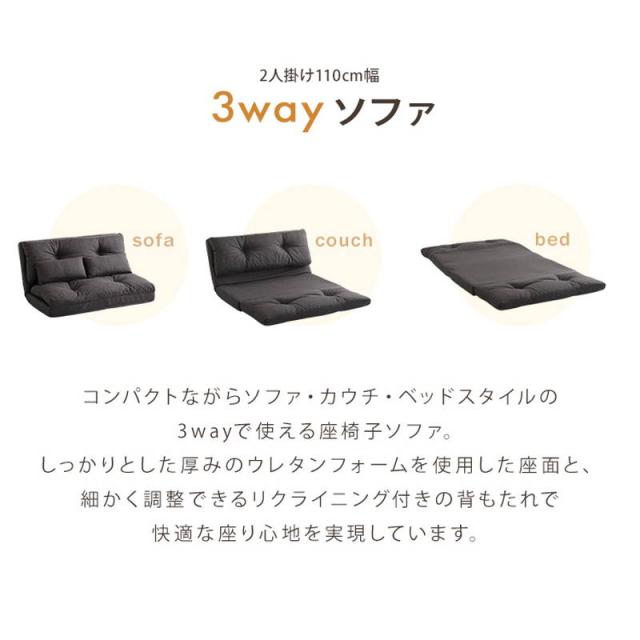 ソファー 座椅子 2人掛け 110cm幅 3way 座椅子 カウチ ベッドスタイル