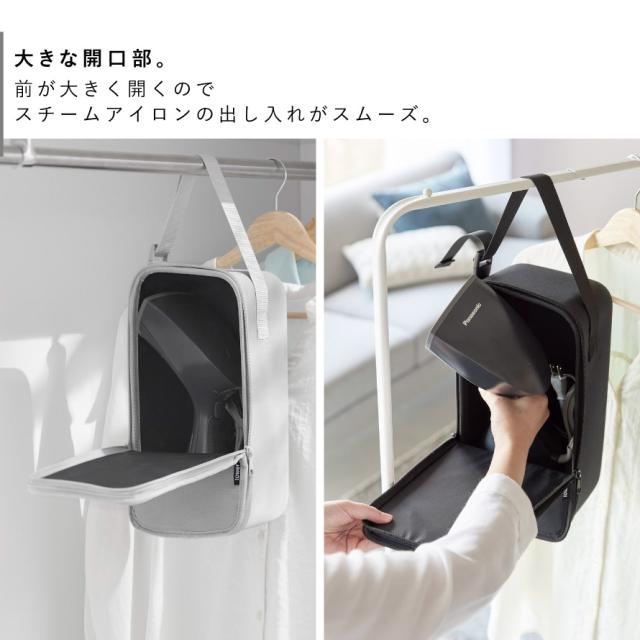 収納に困るハンディタイプのスチームアイロンをすっきりと収納できるケース。ちょっとした衝撃にも安心なセミハードケースを使用。