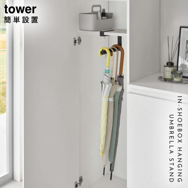 下駄箱中ハンギング傘立て タワー 山崎実業 tower 下駄箱 傘収納 傘立て 吊り下げ 玄関 傘 フック おしゃれ モノトーン ホワイト ブラック 10080 10081