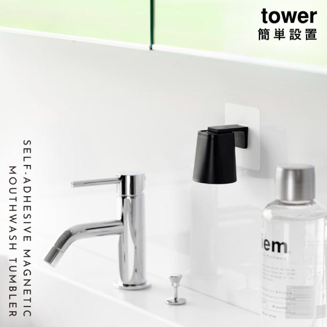 フィルムフックマグネットマウスウォッシュタンブラー タワー 山崎実業 tower 洗面 コップ 逆さ 洗面所 収納 おしゃれ モノトーン ホワイト ブラック 10131 10132