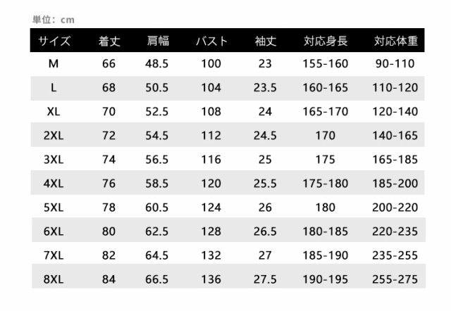 サイズ XL 2XL 3XL 4XL 5XL 6XL 7XL 8XL