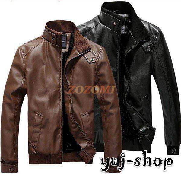 レザージャケット メンズ アウター 春秋冬 長袖 革ジャン PUジャケット ライダースジャケット テーラード 立ち襟 無地 ショート丈