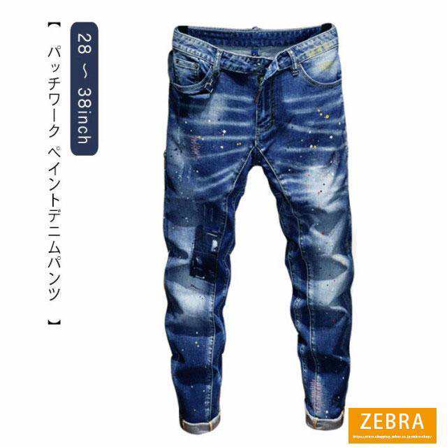 デニムパンツ メンズ ジーンズ ダメージ クラッシュ ヴィンテージブルー スキニー パンツ デニム スキニー ペンキ加工 伸縮 ストレッチ スキニーデ