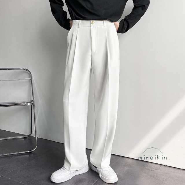 ワイドパンツ メンズ スラックス ビジネス ボトムス パンツ 春物 ズボン ロングパンツ 春秋 白パンツ 黒パンツ グレー カーキ カジュアル 父の日 ギフト