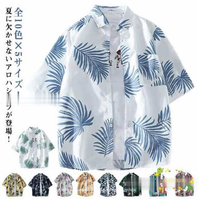 接触冷感 メンズ トップス 韓国 アロハシャツ ゆったり 半袖 カジュアルシャツ 体型カバー おしゃれ 開襟 旅行 大きいサイズ 総柄 結婚式 薄手