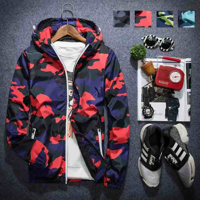 メンズ マウンテンパーカー ウィンドブレーカー ジャケット フード付き ジップパーカー 迷彩 ナイロン 撥水加工 春
