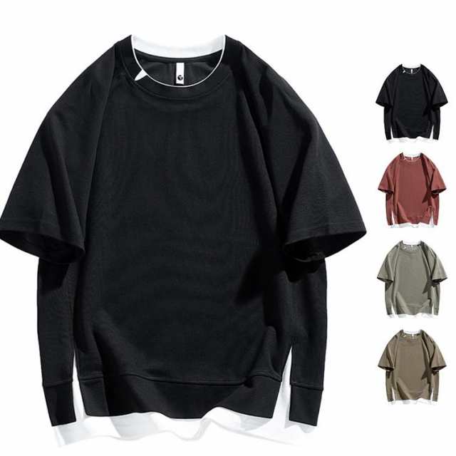 メンズ tシャツ 半袖tシャツ 半袖 Tシャツ フェイク レイヤード 重ね着 無地 シンプル お兄系 トップス 夏
