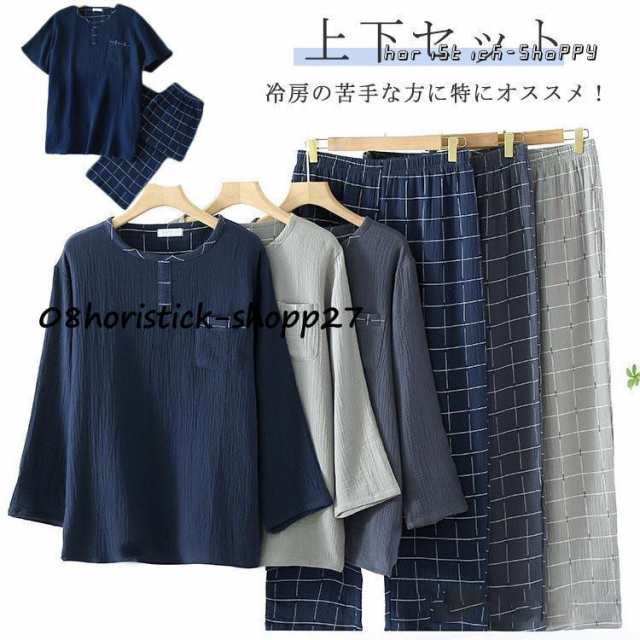 ダブルガーゼ パジャマ メンズ ルームウェア 上下セット 父の日 ギフト 甚平 2重ガーゼ 綿 コットン ナイトウェア 部屋着 かぶるだけ 長袖 半袖