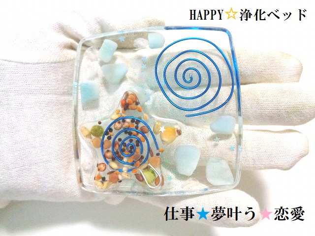 仕事・恋愛・夢叶う☆アマゾナイト★ハッピーシード★風水★浄化★パワーストーン★ストーンプレート★ハッピー浄化ベッド☆HAPPY★オルゴナイト★護符(霊符)