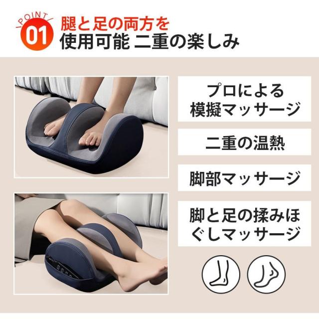2.多機能設計:ふくらはぎや足裏のマッサージ機能に加え、温湿布機能も搭載。 足を温めて心地よい暖かさを与え、さらに血行を促進し、筋肉をリラックスさせます。