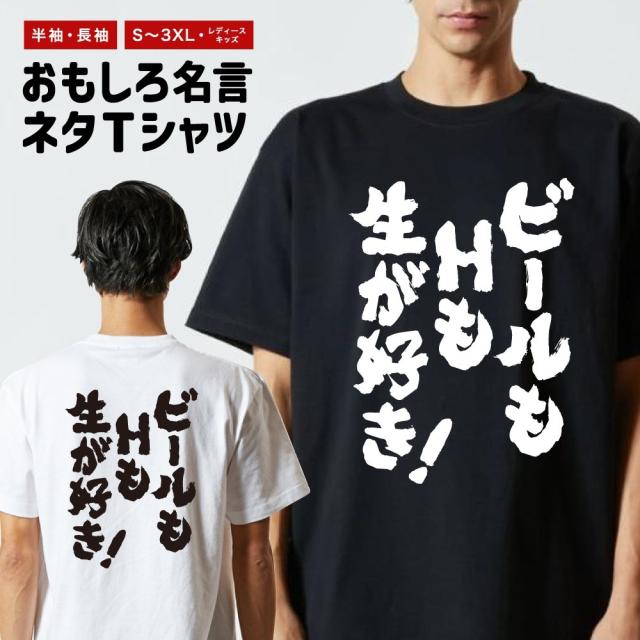 おもしろTシャツ メンズ レディース キッズ 半袖 長袖 面白いTシャツ ネタTシャツ 名言 迷言 ビールもHも生が好き!
