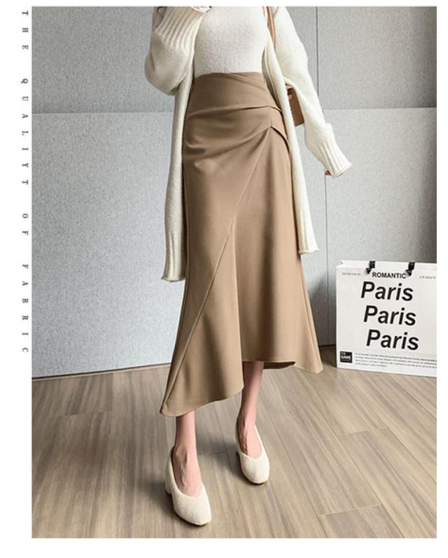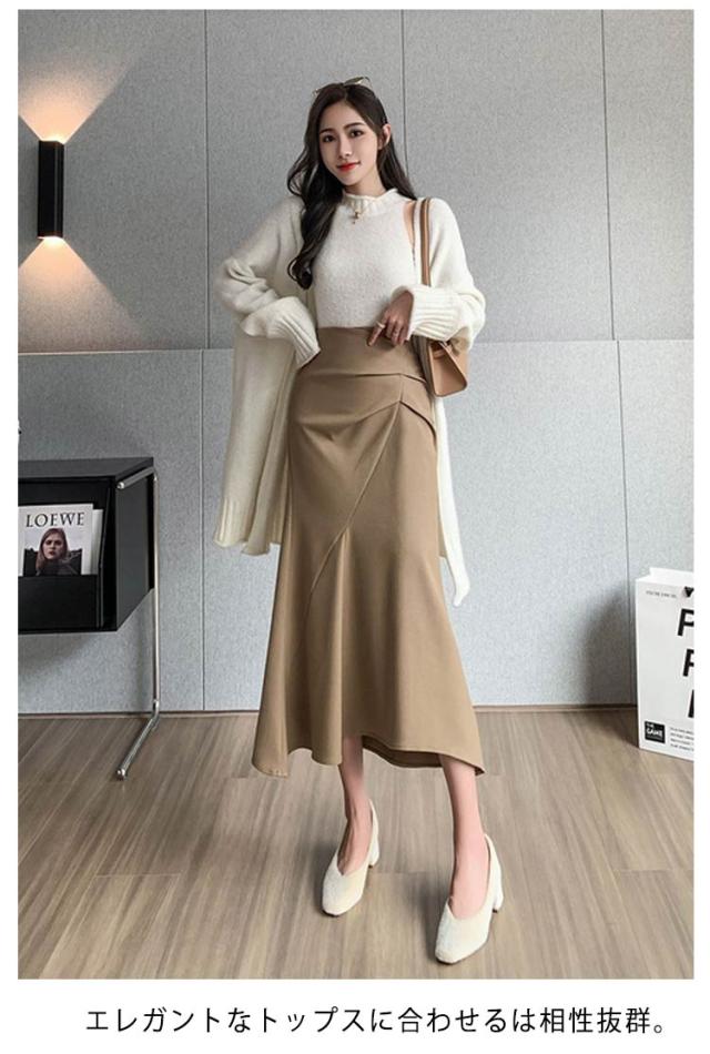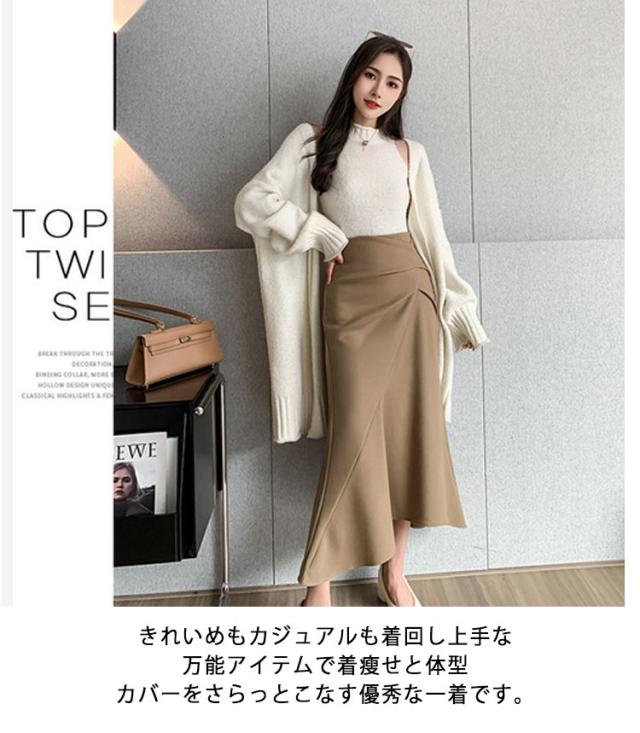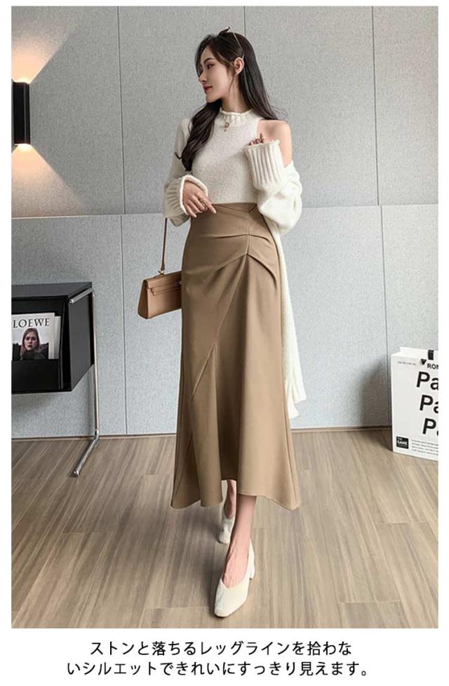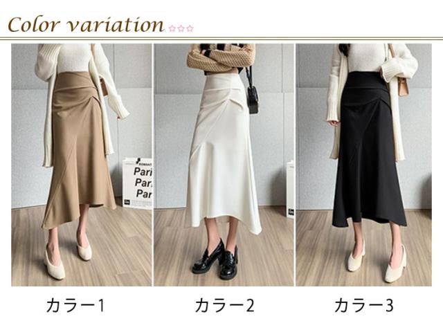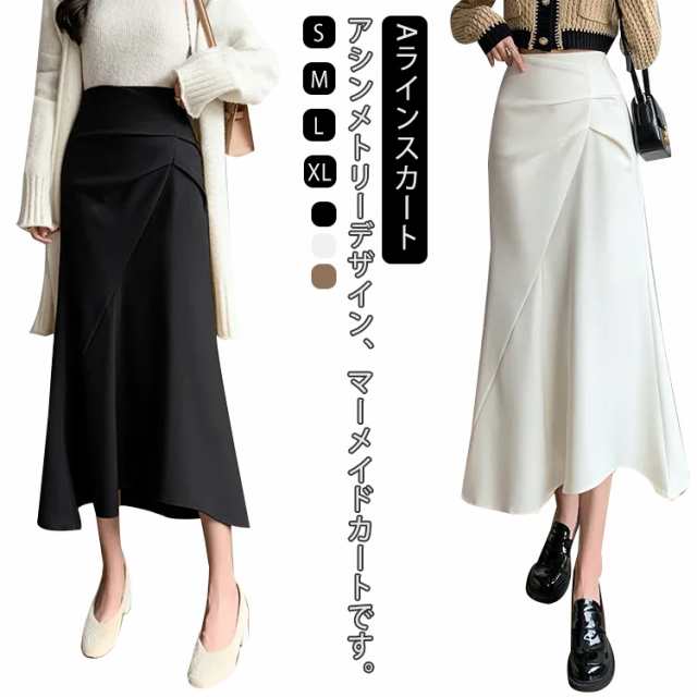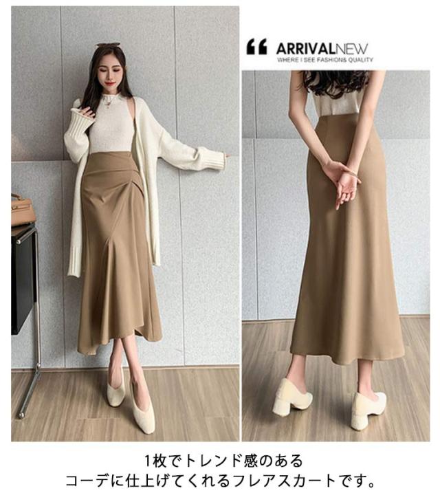 アシンメトリー マーメイドスカート フレアスカート ハイウェスト レディース ロングスカート Aラインスカート ギャザー入り 上品 きれいめ フェミニン ボトムス S M L XL 春 秋 OL