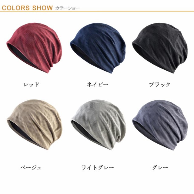 | 【メッシュデザイン】【薄手・涼しい】【6colors】 メッシュ編みで通気性もよく暑い日も快適♪ 普段用はもちろん、抗がん剤治療、医療用帽子にも最適です。 伸縮性がありますので、様々な頭のサイズにフィットします。 生地が薄いので、小さく折りたためる! 軽く手かさばらないので被らない時はカバンに入るので持ち運びも便利! | |