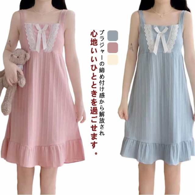 カップ付き ルームウェア 可愛い 夏 パジャマ ワンピース キャミソール レディース 寝間着 レース ガールズ ネグリジェ 無地 部屋着 ナイトウェア カップ付き 女の子 大人 学生 高校生