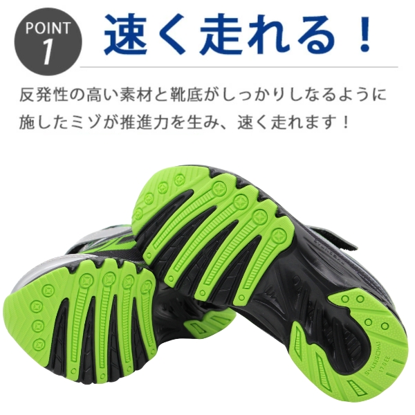 瞬足の定番!軽さ・クッション性・グリップ性・耐久性を高次元で融合する2Eソールを搭載した「Hi-STANDERD(ハイスタンダード)」モデルの新作。左右非対称ソールや軽量設計など、瞬足ならではの機能もしっかりと搭載♪迫力のあるデザインで、足元のインパクトは抜群!体育やクラブ活動、運動会はもちろん耐久性に優れた構造になっていますので通学でも活躍します。