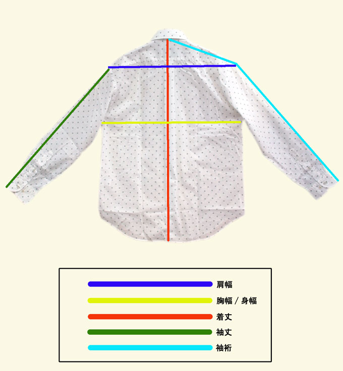 着丈 | 胸囲 | 肩幅 | 袖丈 | 裄丈 | 裾囲 |