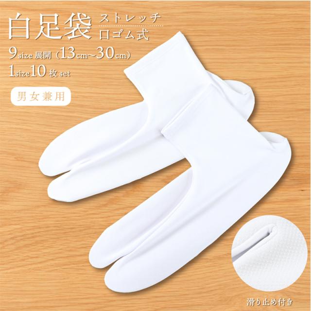 ストレッチ足袋 3足セット たび 口ゴムタイプ 足袋 こはぜ無し 白 白無地 メンズ レディース ストレッチ生地 浴衣 作務衣 袴 振袖 お芝居 旅館 中居さん イベント催事 お稽古 お芝居 茶道 作務衣 足袋カバー 足袋インナー 滑り止め ゴム付 【メール便送料無料】