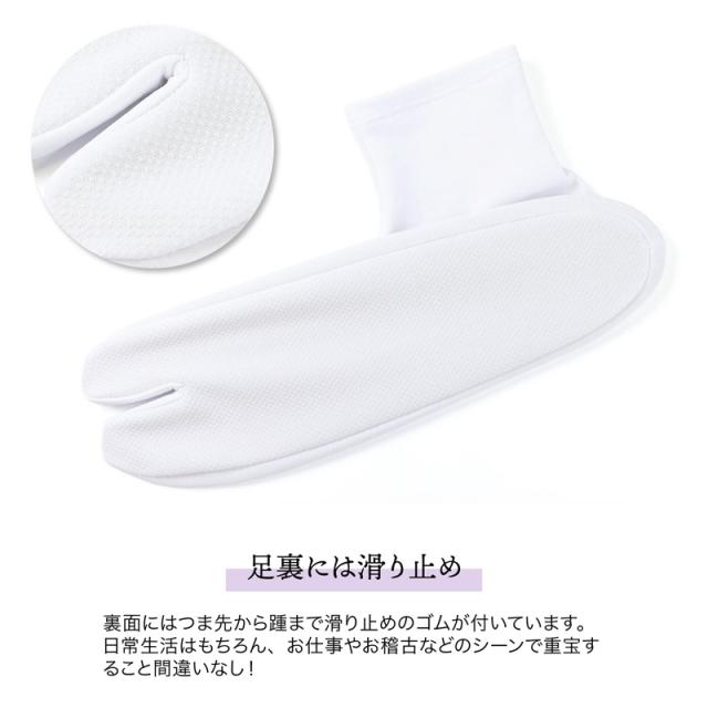 裏面にはつま先からかかとまで滑り止めのゴムが付いています。日常生活はもちろん、お仕事やお稽古などのシーンで重宝します。