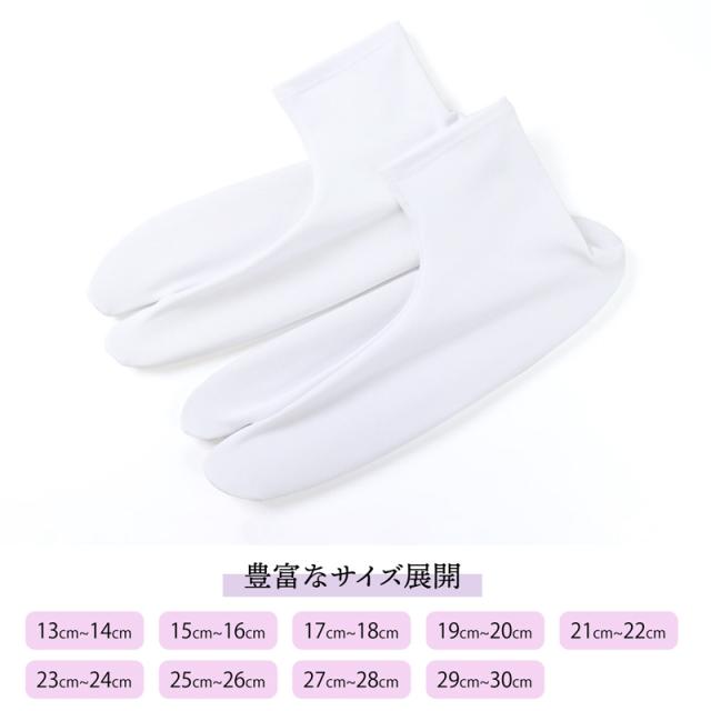 また、こはぜが付いていない口ゴムタイプの履き口なので、靴下感覚でかんたんに手早く着脱が可能。シワになりにくく乾きやすいポリエステル製の足袋は、洗濯機で洗えるので取り扱いラクラクです。