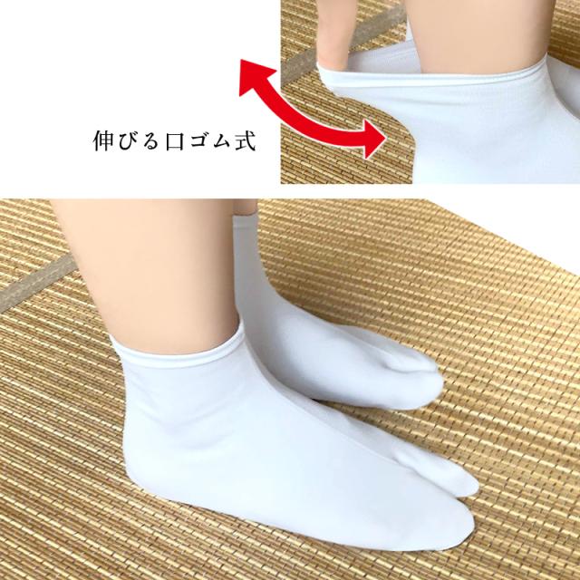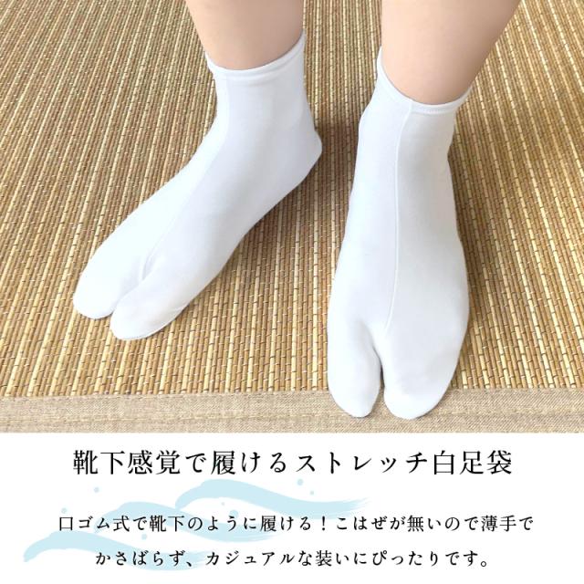 口ゴム式で靴下のように履ける!ストレッチ白足袋です。