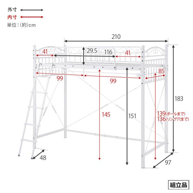 ロフトベッド:約 W97 x D210 x H183cm(床面高151cm)