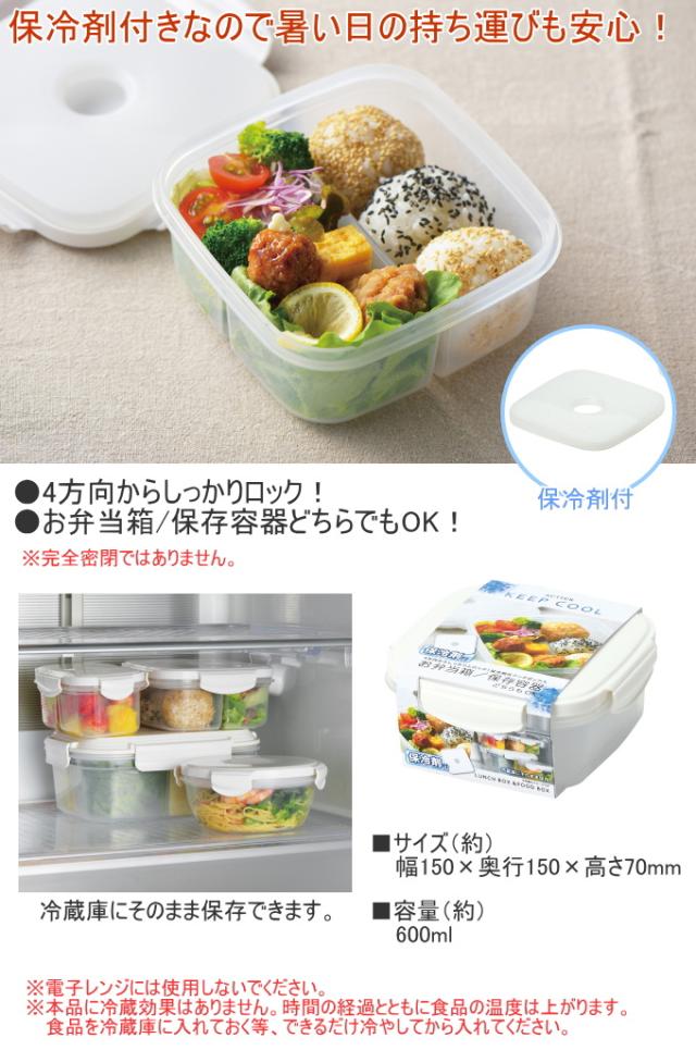 保冷剤付きなので暑い日の持ち運びも安心! 4方向からしっかりとロック。 お弁当箱としても保存容器としても、どちらでもOK! 冷蔵庫にそのまま保存出来ます。 ※完全密閉ではありません。振ったり横にしたりすると汁漏れする原因になります。 ※電子レンジには使用しないでください。 ※保冷剤は食器洗い乾燥機には使用しないでください。変形の原因となります。 ※業務用の食器洗い乾燥機には使用しないでください。 ■その他の弁当箱はこちら↓ 弁当箱 |