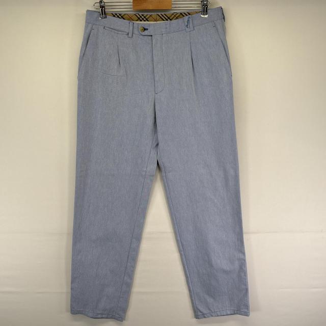 古着 バーバリー BURBERRY チノパンツ タックパンツ ロゴ刺繍 テーパード スラックス 大きいサイズ 44 ブルー メンズ