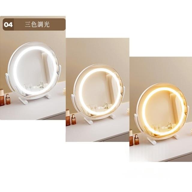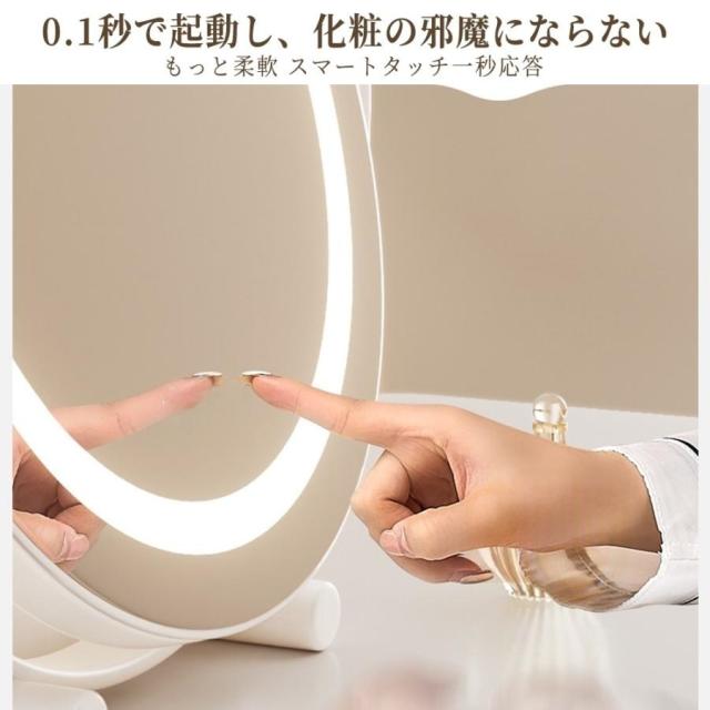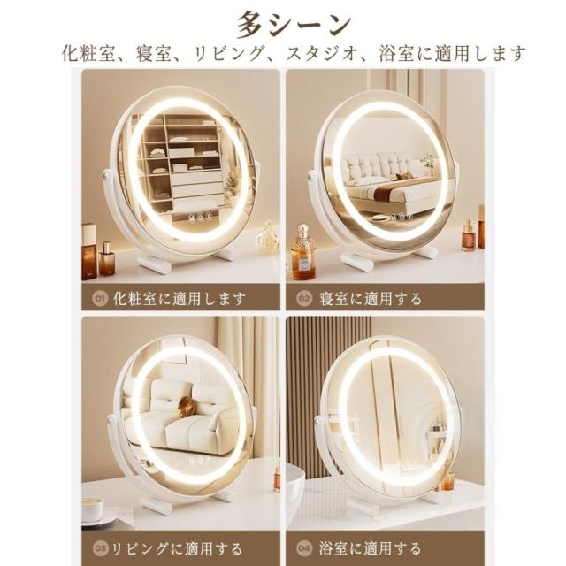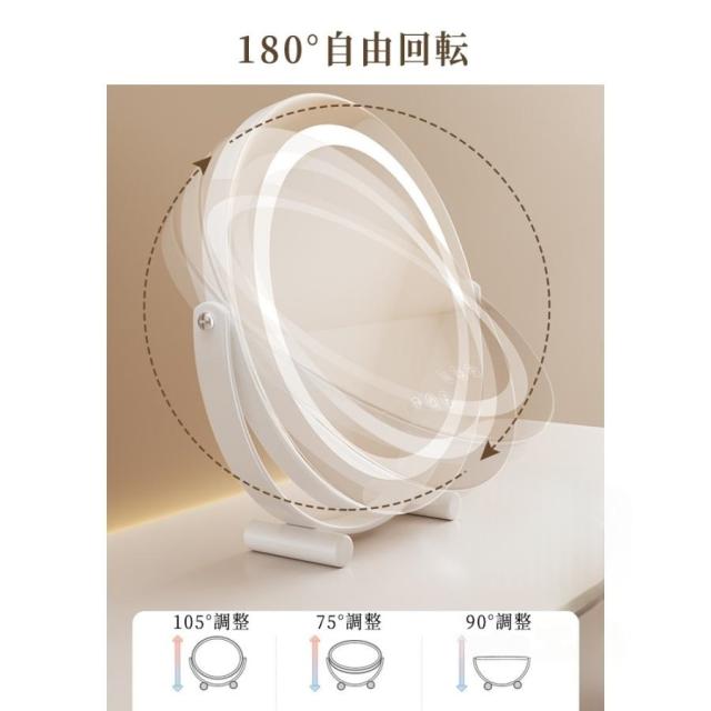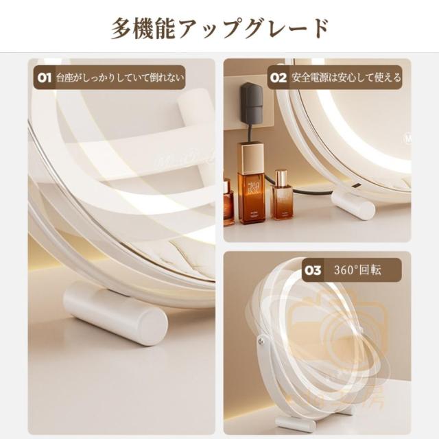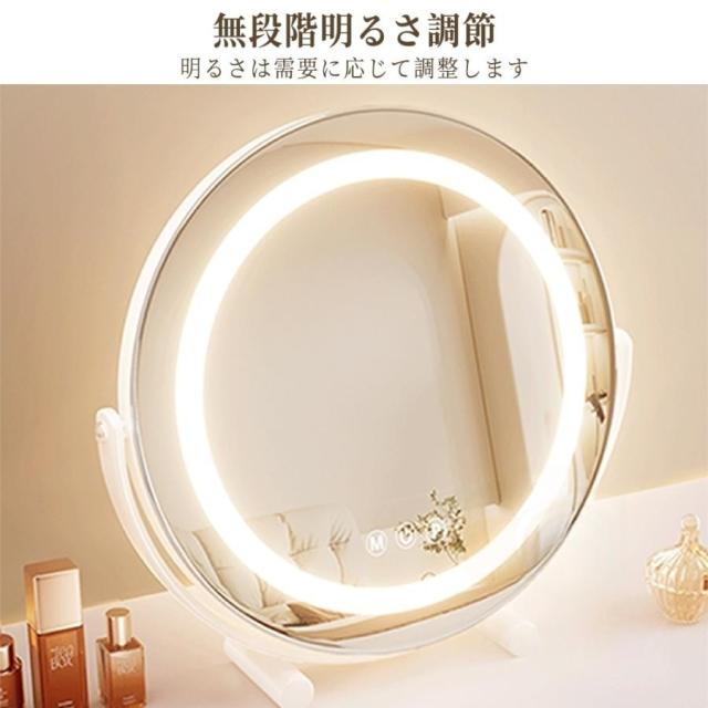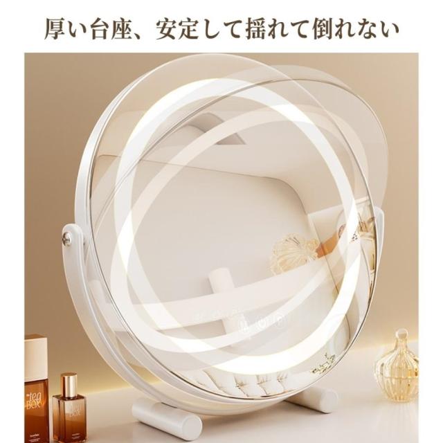 女優ミラー 卓上ミラー 卓上鏡 化粧鏡 led ライト付き 大きい 丸型 メイク鏡 ドレッサー USB充電式 180°回転 無段階調光 三色光源 おしゃれ 女性 ギフト 誕生日
