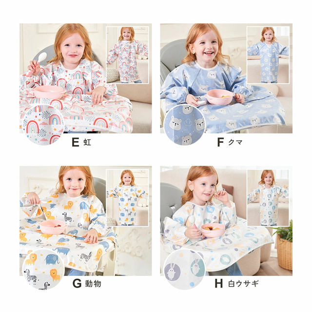 送料無料 冬新作 お食事エプロン ベビーエプロン 長袖 保育園 赤ちゃん エプロン 一体型 マジックテープ ビブ よだれかけ お食事 離乳食 防水 女の子 男の子 キッズ つかみ食べ 食べこぼし ダイニングチェア かわいい 出産祝い 食事エプロン
