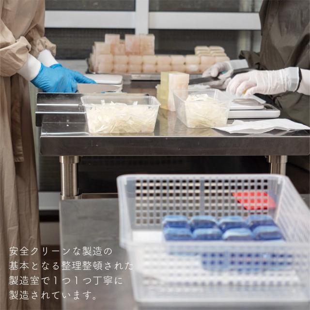 ●経年や環境の影響で水分が蒸発し、重量が減る場合があります。また、石鹸の収縮により表面のラップにしわが生じることがありますが、ご使用には問題ございません。